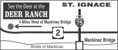 Welcome to the Deer Ranch in St. Ignace, Michigan, known as the oldest live whitetail exhibit in North America. We feature dozens of native Michigan Whitetail Deer and fawns including white deer all in a natural setting which you can photograph and feed while walking along a nature trail.